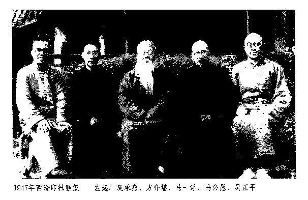 马公愚(1893~1969),本名范,初字公驭,后改公禺、公愚,晚号冷翁,因其斋名“畊石簃”,故又署畊石簃主。永嘉城区(今鹿城区)百里坊人。永嘉马氏,自清以来,以诗文、金石、书画传家凡二百年。曾祖昱中(解元出身)、祖父兰生(名元熙),均工诗文书画。公愚幼承家学,稍长曾师承瑞安孙诒让,究心周鼎秦权、石刻奇字。后与兄孟容就读温州府中学堂;光绪三十四年(1908)考入浙江高等学堂。宣统三年(1911)毕业后返里,次年创办永嘉启明女学。民国3年(1914)创设东瓯美术会,后任教浙江省立十中。8年7月,与郑振铎等发起组织永嘉新学会,提出“改革旧思想,创立新思想”的主张,次年出版《新学报》。13年赴上海,先后任上海中学教员,存德中学、勤业中学董事长,上海美专教授,大夏大学文书主任兼中国文学系国文教授。18年,与郑曼青、马孟容等创办中国艺术专科学校,并任书法教授。同年,教育部举办第一次全国美术展览,被聘为委员;后又应聘为“西湖博览会”美术馆委员。22年,其作品参加柏林“中德美术展览”,后又参加“中日联合绘画展”及英国、意大利等地画展。30年,与马漪等在上海大新画厅举办“永嘉五马画展”。战后美国画展及国内历次各大美展,亦均有作品参加。在此期间,还先后任上海美术会、中国画会理事,中华艺术教育社常务理事及上海市美术馆筹备处设计委员等职。建国后,任上海文史馆馆员、上海中国画院画市,还兼任中国文字改革委员会委员,并参加中国美术家协会上海分会、上海中国书法篆刻研究会等。